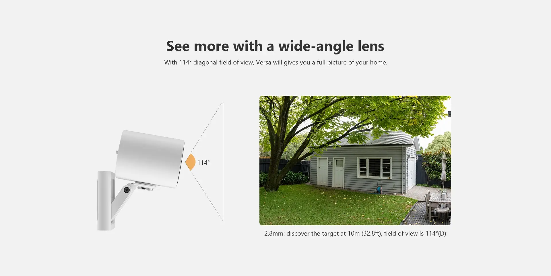 Com campo de visão diagonal de 114 °, Versa lhe dará uma imagem completa da sua casa.