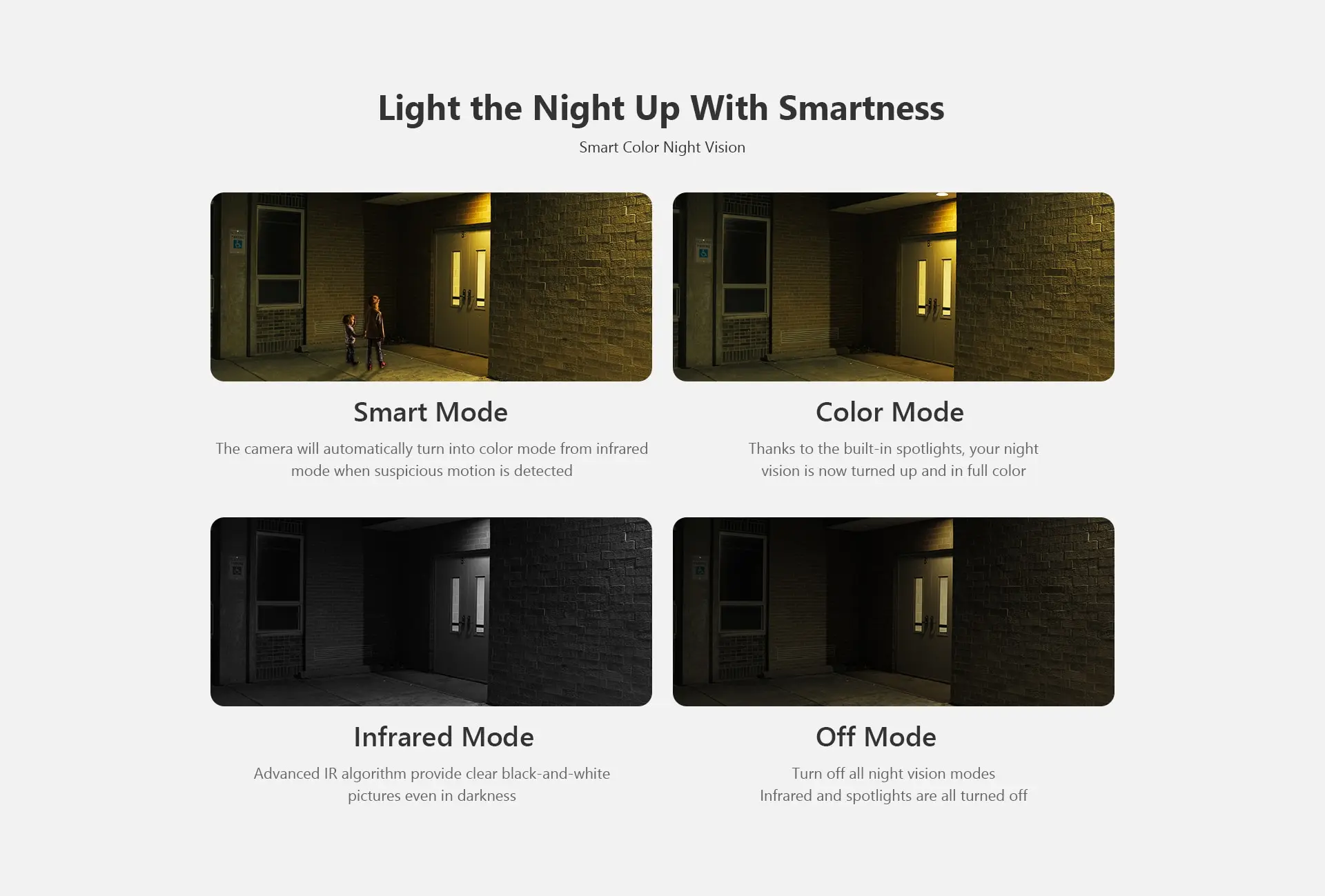 • Visão noturna de cor :Com visão noturna colorida, você pode ver tudo claramente, mesmo em condições de pouca luz, garantindo que você nunca perca nada.